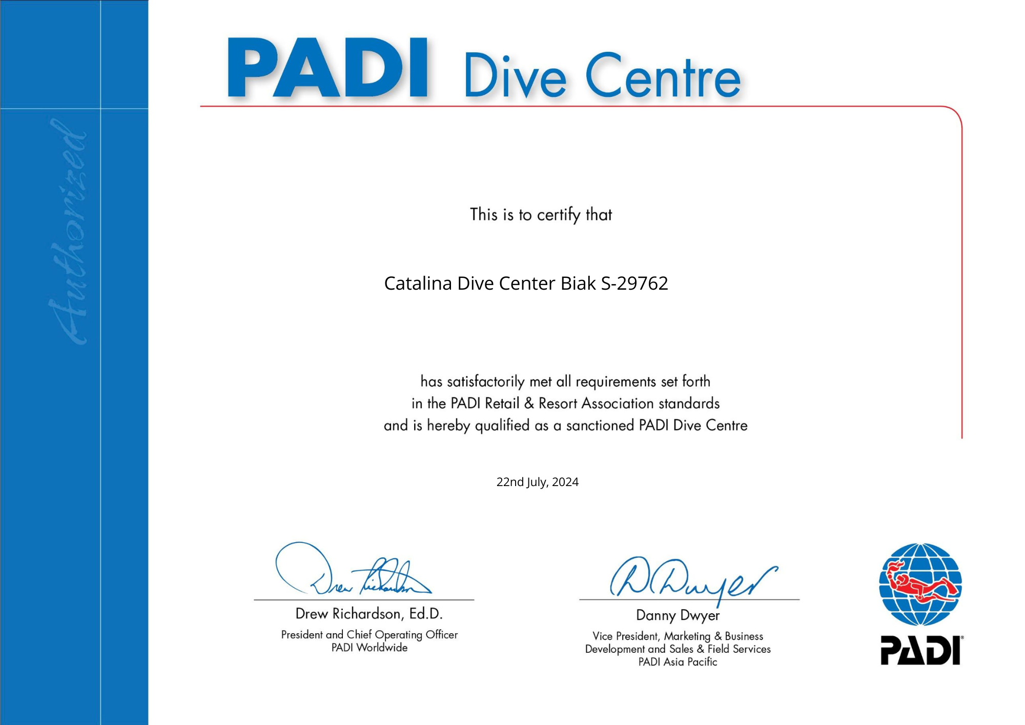 Catalina Dive Center Biak has been certified a PADI Dive Centre since July 2024.